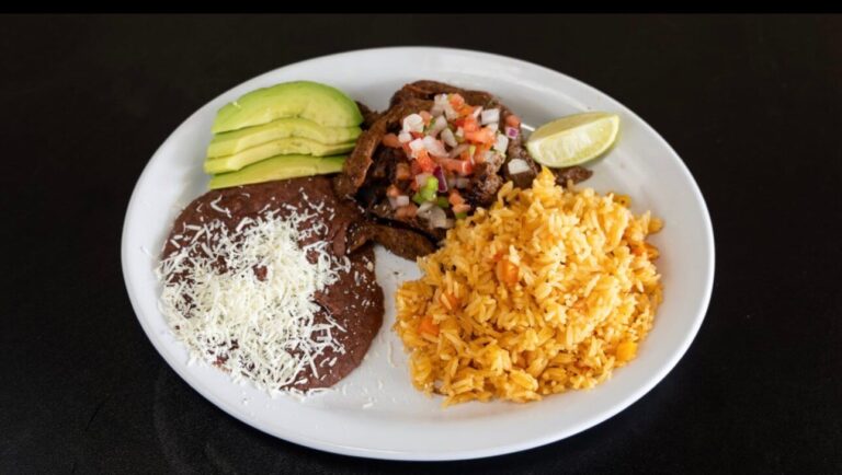 Served Pepper, Onion, Cilantro, Sour Cream, Pico De Gallo, Cheese, Rice And Beans, And 4 Corn Tortillas